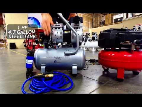 California Air Tools Quiet Flow 1-HP 4.7-Gallon Steel Tank Air Compressor w/ Nail Gun Kit