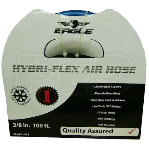 Eagle Hybri-Flex 3/8" x 100' Air Hose w/ 1/4" MNPT Fittings
