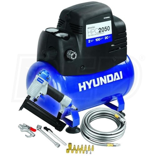 Hyundai 2-Gallon Hot Dog Air Compressor Kit w/ 2-In-1 Brad Stapler