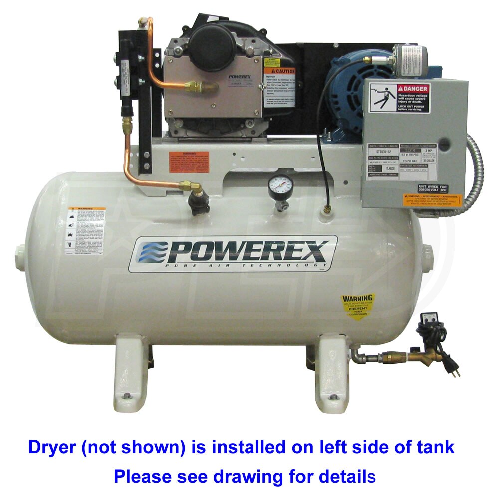 Powerex STS 3-HP 30-Gallon Oil-Less Open Scroll Air Compressor w/ Refrigerated Dryer (460V 3-Phase 116 PSI)