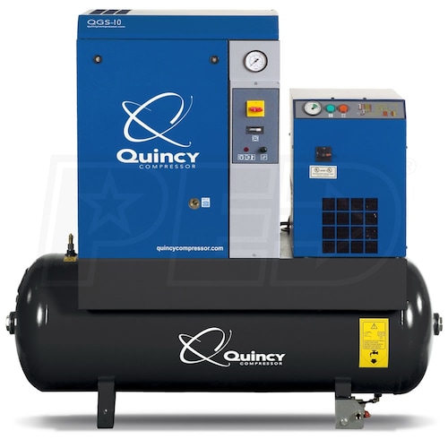 Quincy QGS 10-HP 120-Gallon Rotary Screw Compressor w/ Dryer (208/230/460V 3-Phase)