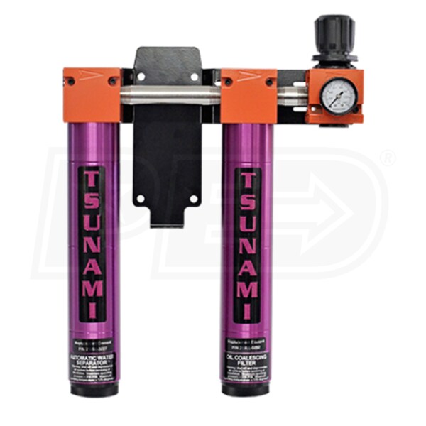 Tsunami Filtration Package #4 - 1" Water Separator, Oil Coalescing Filter & Regulator (120 CFM)